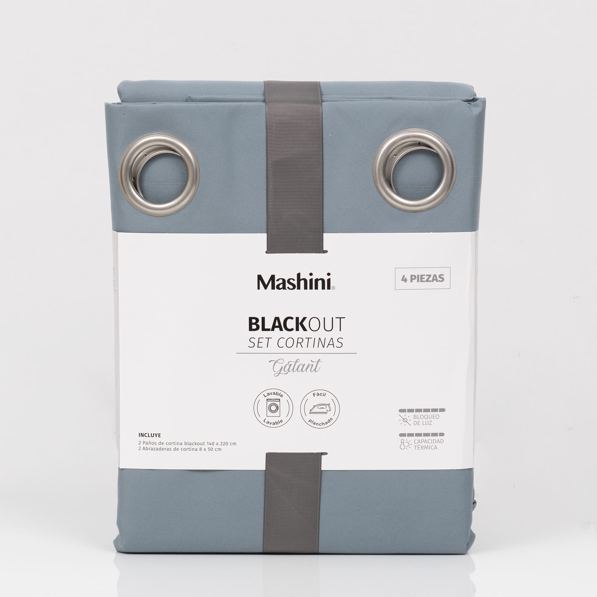 Set Cortinas Blackout Argolla Galant Celeste