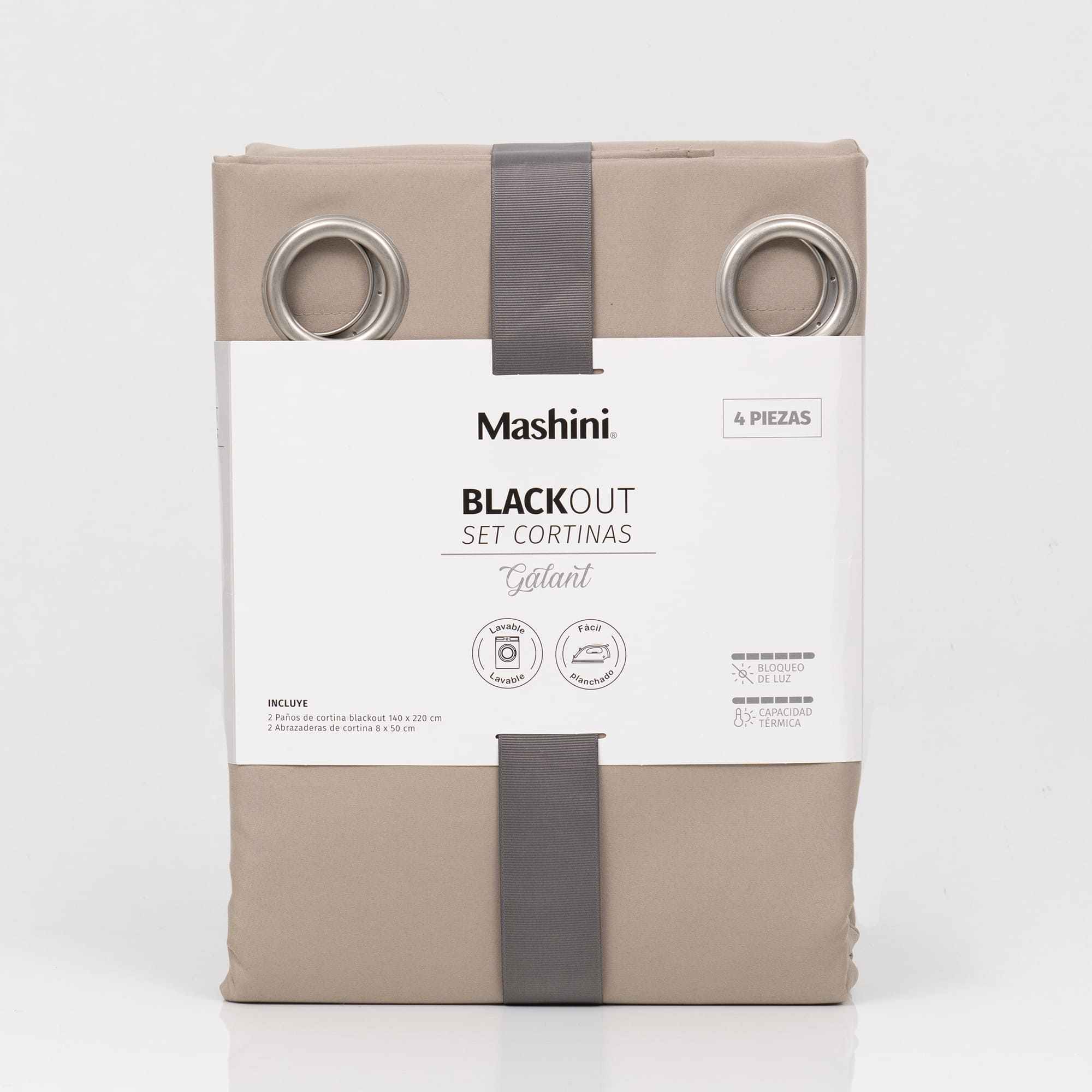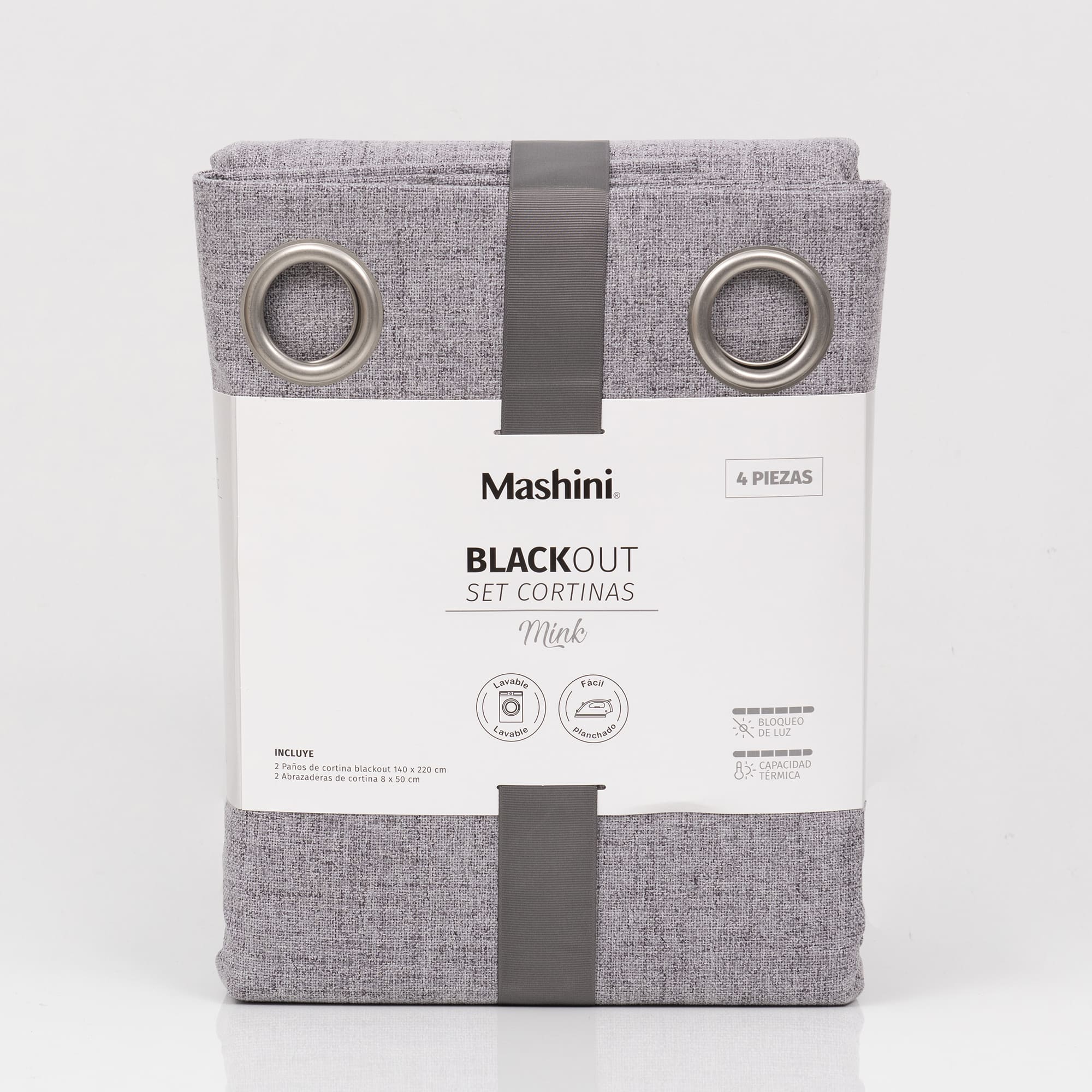 Set Cortinas Blackout Argolla Mink Gris Perla