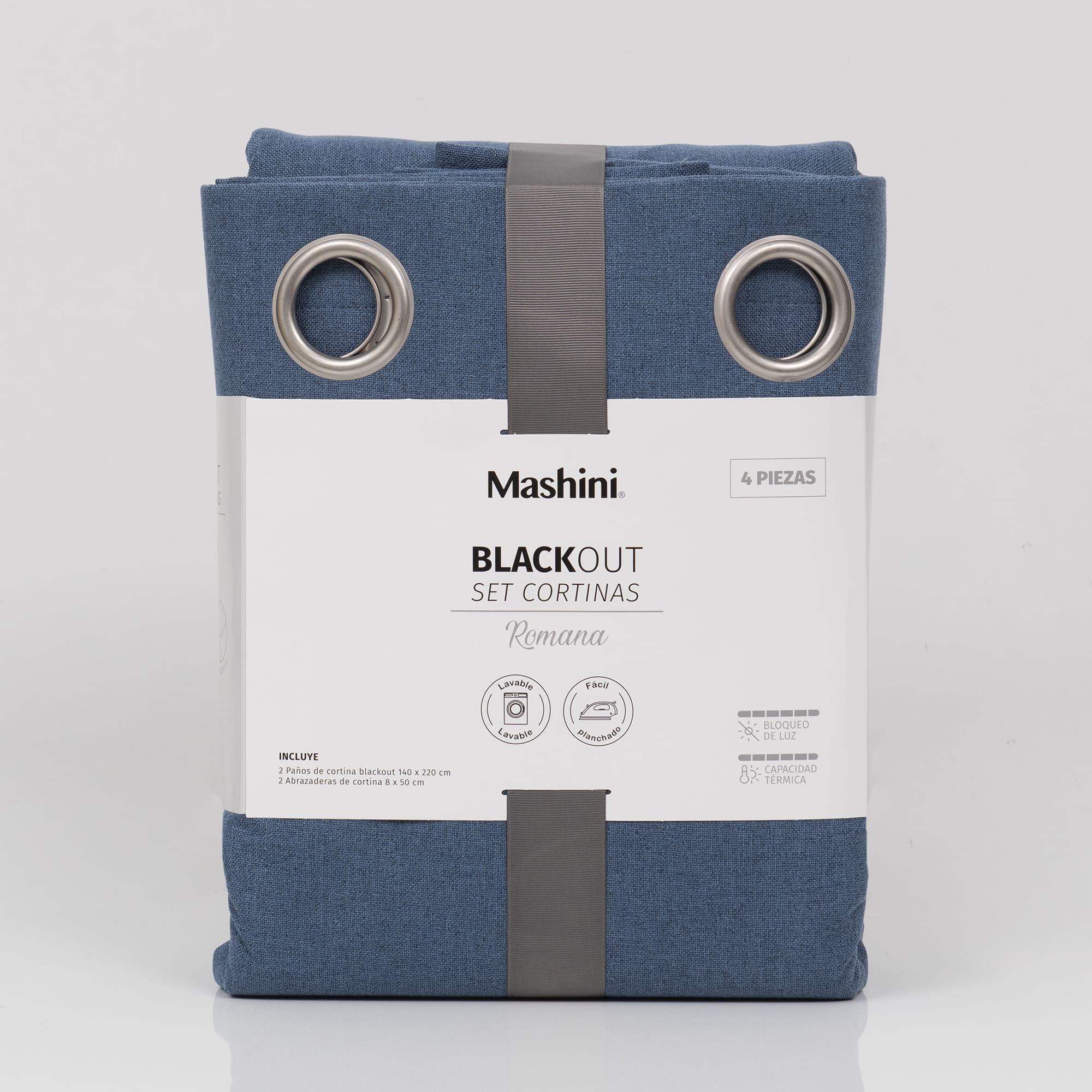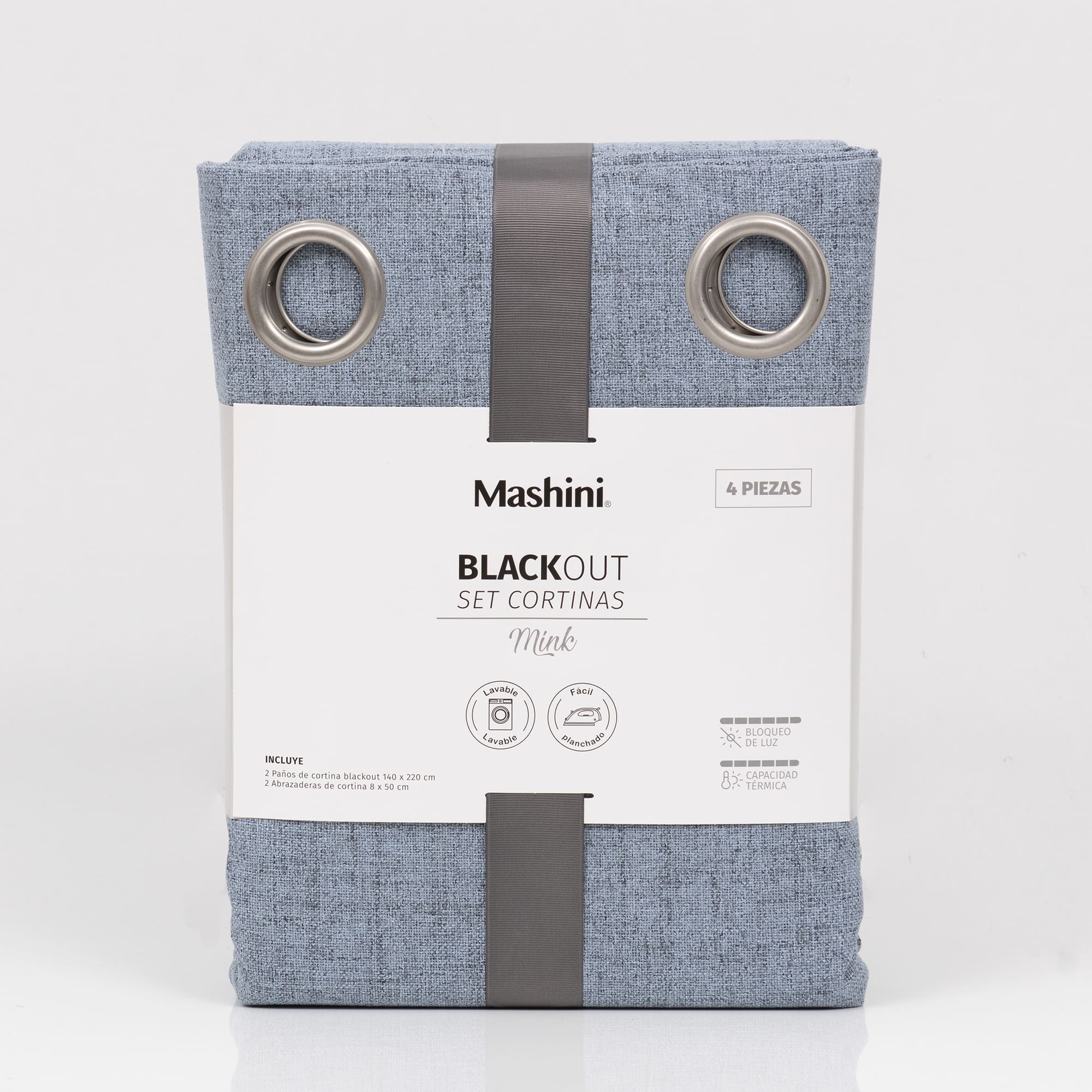 Set Cortinas Blackout Argolla Mink Azul