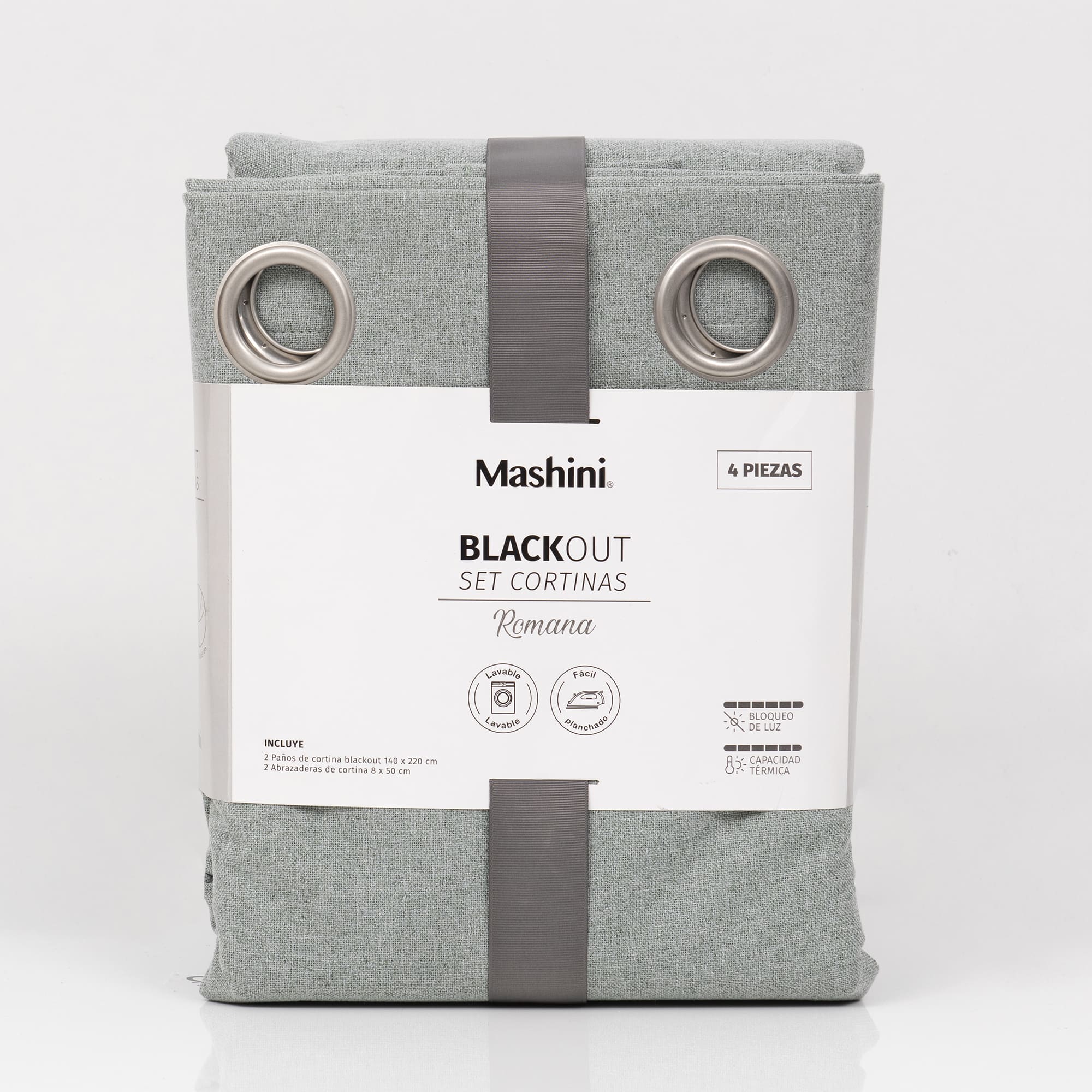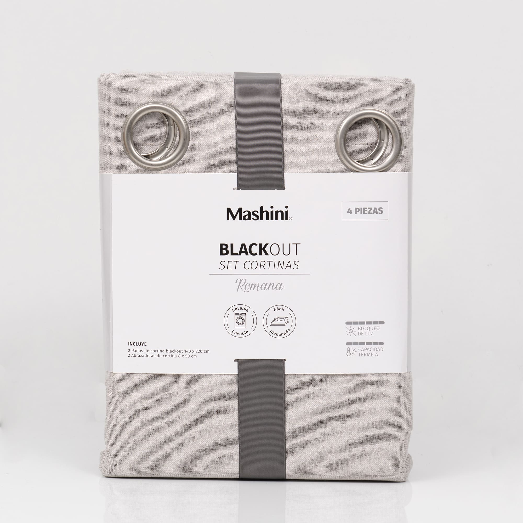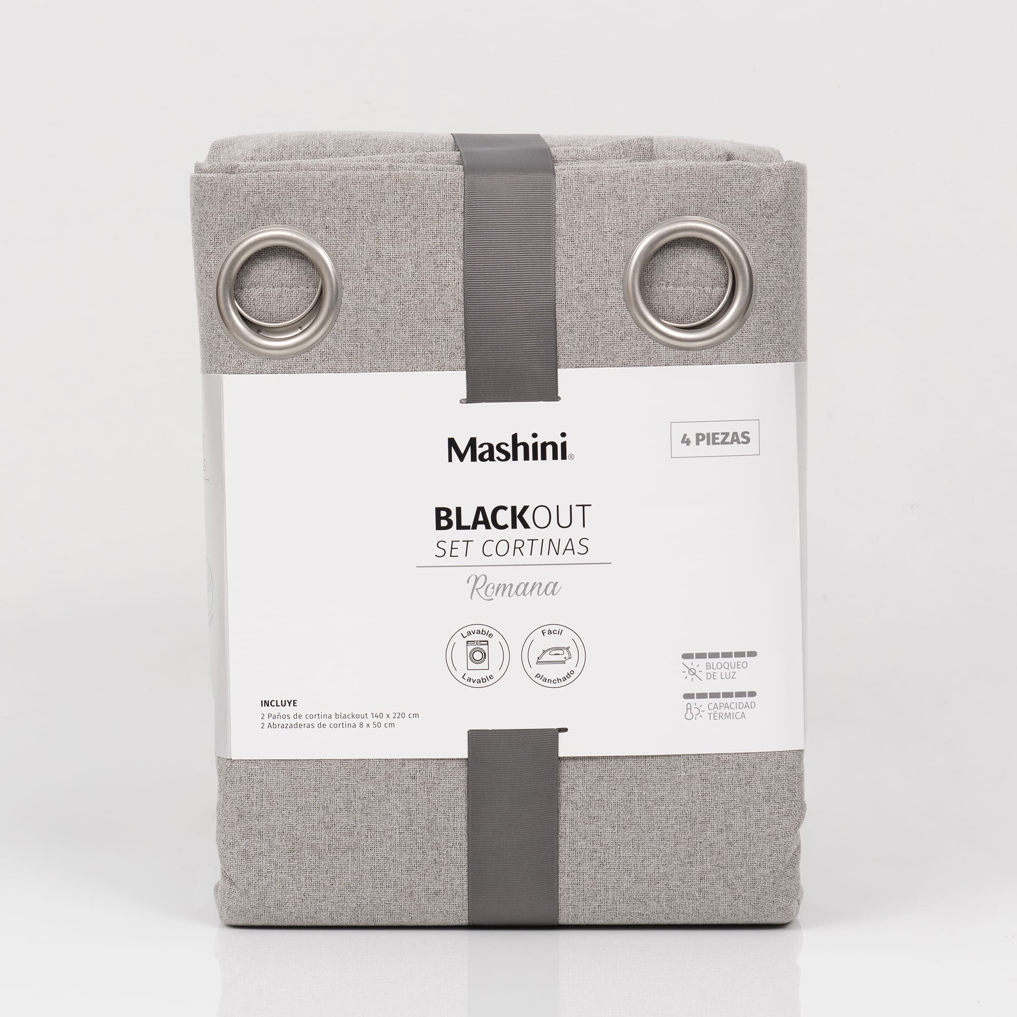 Set Cortinas Blackout Argolla Romana Gris Claro