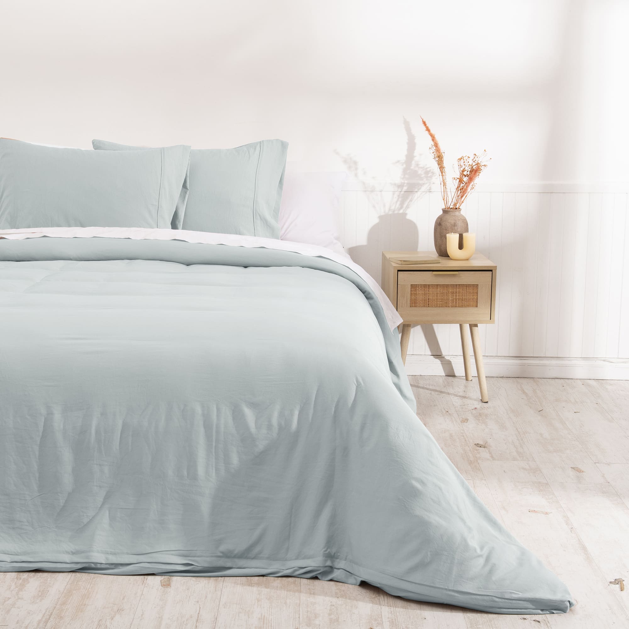 Funda Plumón King Microfibra Celeste