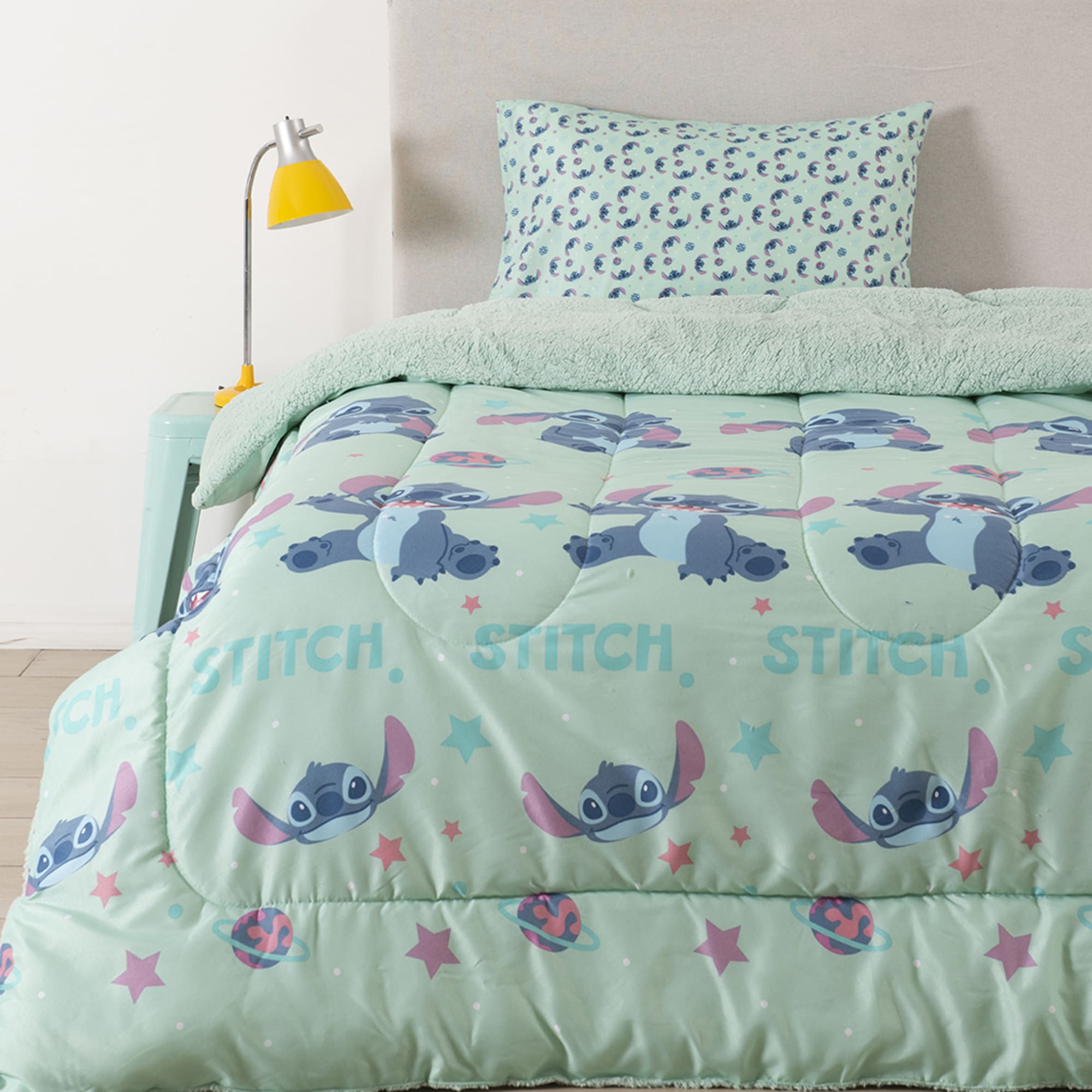 Con un diseño inspirado en Stitch, este plumón aporta un estilo entretenido y lleno de personalidad. Apto para niños y niñas, es una excelente opción para quienes buscan combinar calidez, diseño y un toque especial en su habitación.
